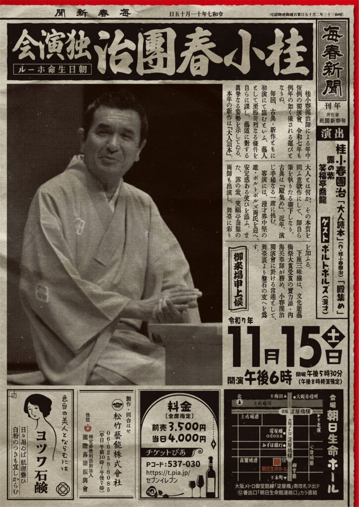 今年も桂小春團治師匠の独演会チラシをデザインさせていただきました。